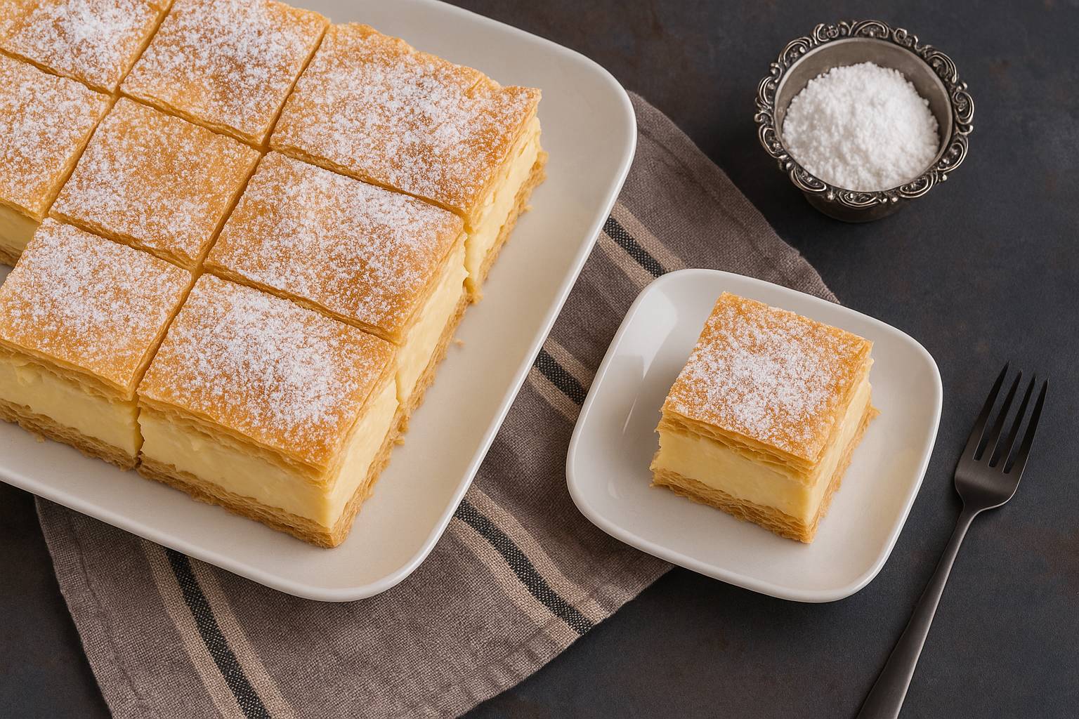 ظرافتی که نگاهت رو نگه میداره. این دسر با اون لایههای منظم خمیر هزارلا، و اون کرم وانیلی سبک و ابری که بینش نشسته برام شبیه آرامشه. خلاصه که امروز به دلم صابون زدم که این دسر لطیف اتریشی میتونه به یه دسری تبدیل بشه که با چنگال فرو میری وسطش